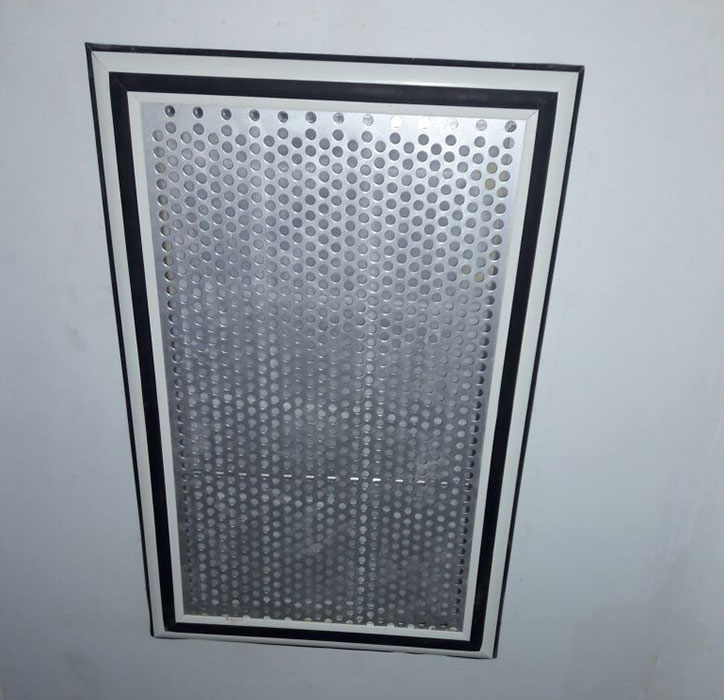 Powder-coated perforated grills made from 18 G prime aluminium sheets are provided over the HEPA Filters face to prevent any damage to the filter face.