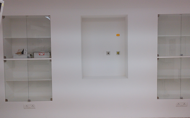 - AMS Provides customized built-in Storage Cabinets inside the OT which can store sterile items, Syringes, Sutures, Saline Bottles, Catheters, Sterile Bins etc, for ready availability inside the OT.